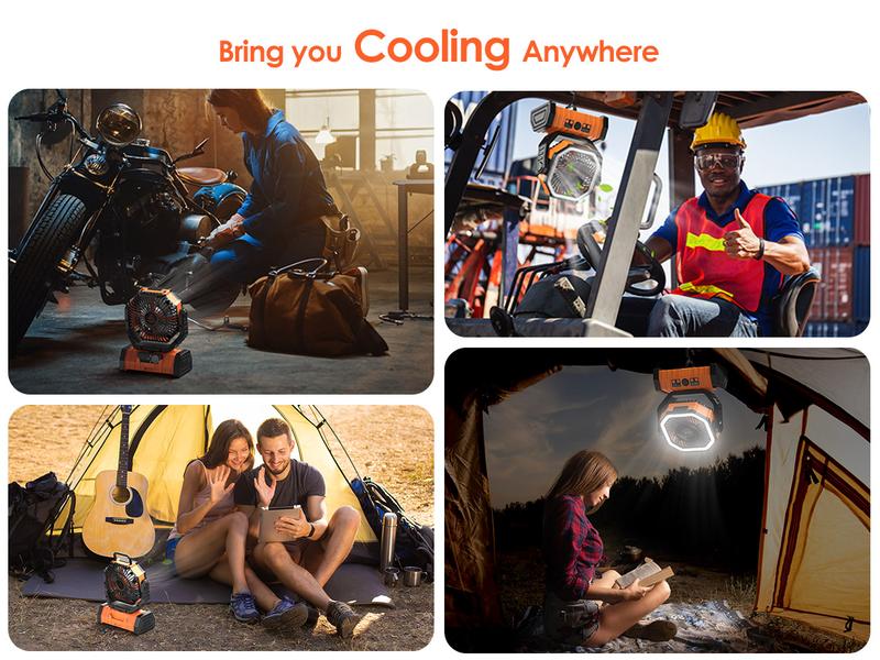 Massive 20,000mAh Battery | 3-in-1 Versatility Not just a fan—this powerhouse doubles as a bright LED light and emergency power bank to charge (perfect for blackouts or adventures). Extreme Long-Lasting Performance Enjoy 12–58 hours of runtime (Fan mode)—39-138 hours (Light mode), no more midnight power anxiety!