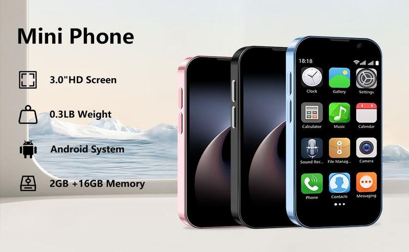 【3.0-inch Pocket-sized Smartphone】 -This MINI smartphone has a 3.0-inch HD Touch Screen and is even smaller than a bank card. Measuring 3.7 * 1.9 * 0.5 inches in size and weighing just 0.3LB, it's extremely easy to carry around and can be conveniently operated with one hand.